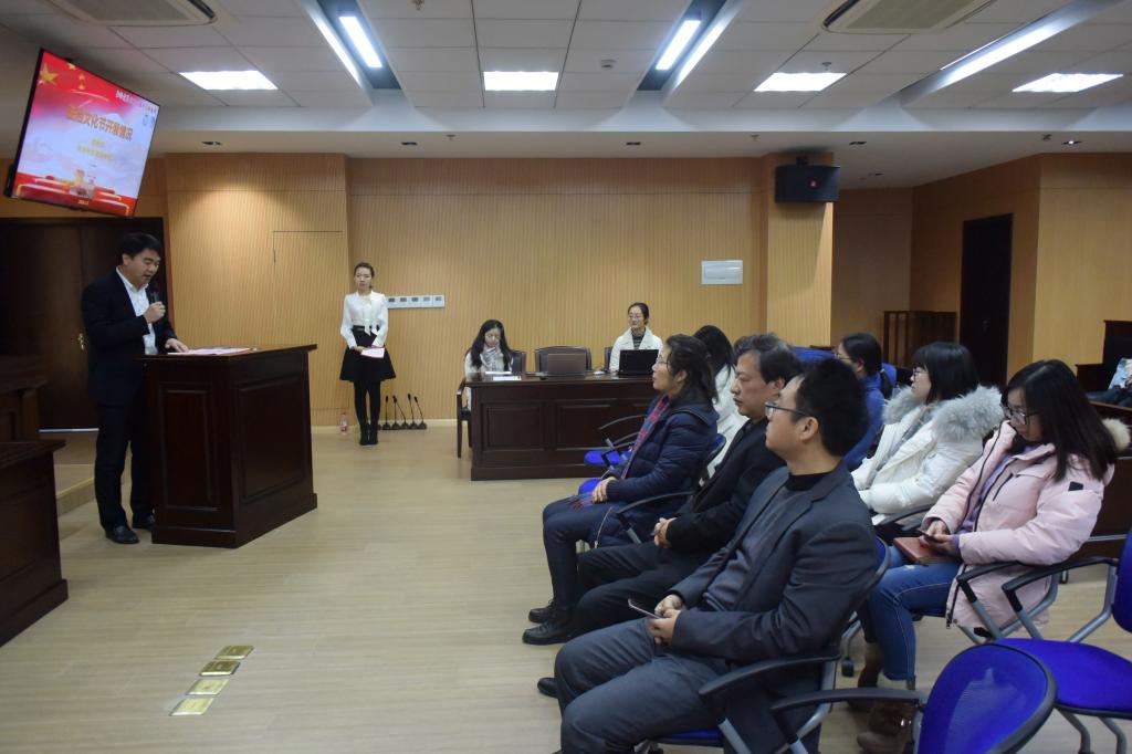 2020年1月2号上午8时30分,澳门pg官方电子平台首届法治文化节闭幕式在宝山校区澳门pg官方电子平台模拟法庭顺利举行。校党委宣传部文明部副主任孙蕊、校党政办副主任陈敬根、澳门pg官方电子平台党委书记徐国明、澳门pg官方电子平台党委副书记王国正出席本次闭幕式。澳门pg官方电子平台19级研究生李晓玮主持本次活动。
