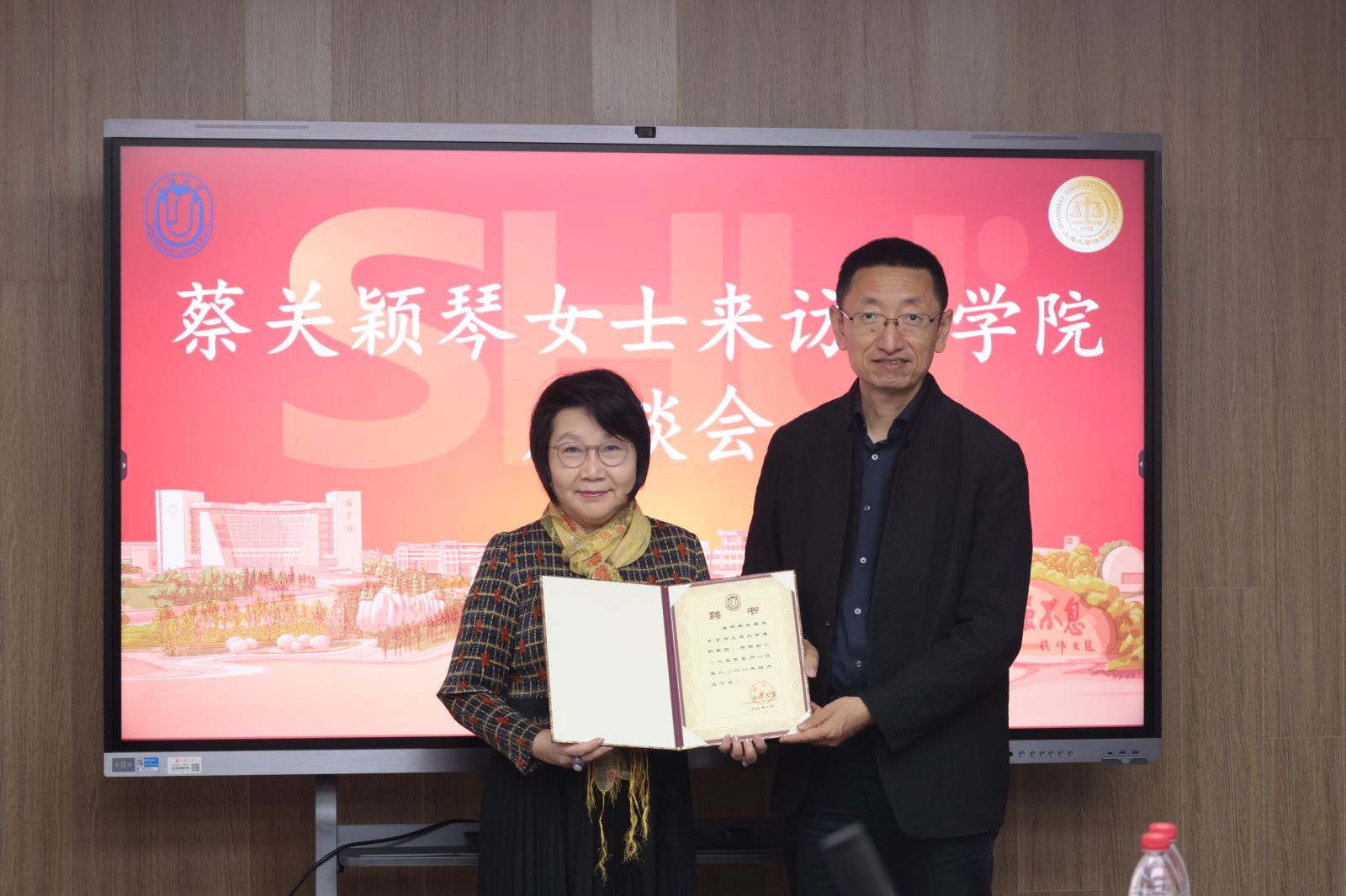 2025年5月28日上午,天津市政协常委、全国妇联执委、香港法律改革委员会委员、粤港澳大湾区企业家联盟法律委员会主席、新华集团顾问及法律总监蔡关颖琴女士来访澳门pg官方电子平台,受聘澳门pg官方电子平台知识产权学院战略发展委员会专家委员和澳门pg官方电子平台兼职教授,并见证澳门pg官方电子平台蔡冠深奖学奖教基金捐赠签约。澳门pg官方电子平台党委常委、总会计师苟燕楠会见蔡关颖琴女士一行,澳门pg官方电子平台党委副书记、院长李凤章主持相关仪式。