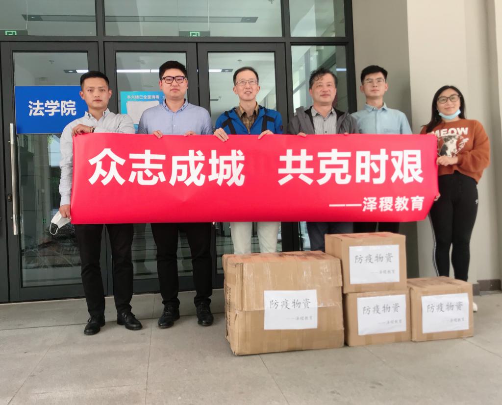 5月7日下午,上海泽稷教育培训有限公司吴世浩副总裁一行来到澳门pg官方电子平台,向澳门pg官方电子平台捐赠了一次性医用口罩、高浓度消毒液、洗手凝胶、喷壶等防疫物资。澳门pg官方电子平台党委书记徐国明接待了热情接待了来宾。