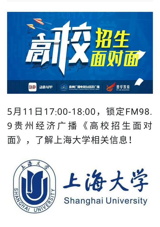 为帮助贵州省2020年高考生和家长及时掌握澳门pg官方电子平台招生政策,科学制定升学规划方案,应贵州广播电视台经济广播频道的邀请,5月11日17:00-18:00,校招生与毕业生办公室副主任汪宏斌和校贵州招生宣传组组长、澳门pg官方电子平台党委书记徐国明参加了“高校招生面对面”栏目的电话直播采访,解答上大在贵州省的招生政策。