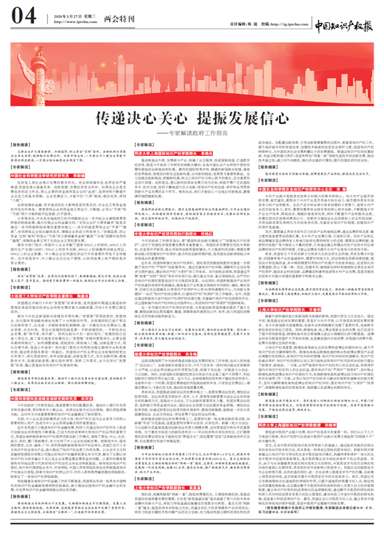 《中国知识产权报》在2020年5月27日的两会特刊栏目刊发《传递决心关心 提振发展信心——专家解读政府工作报告》一文,澳门pg陶鑫良教授、许春明教授、袁真富副教授分别就政府工作报告部分内容进行解读。