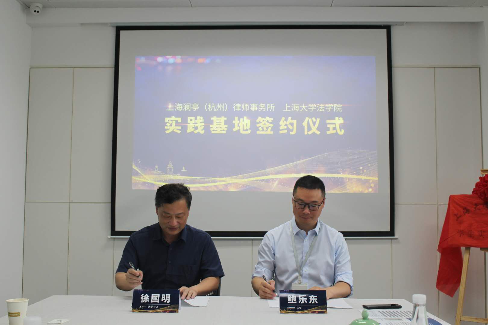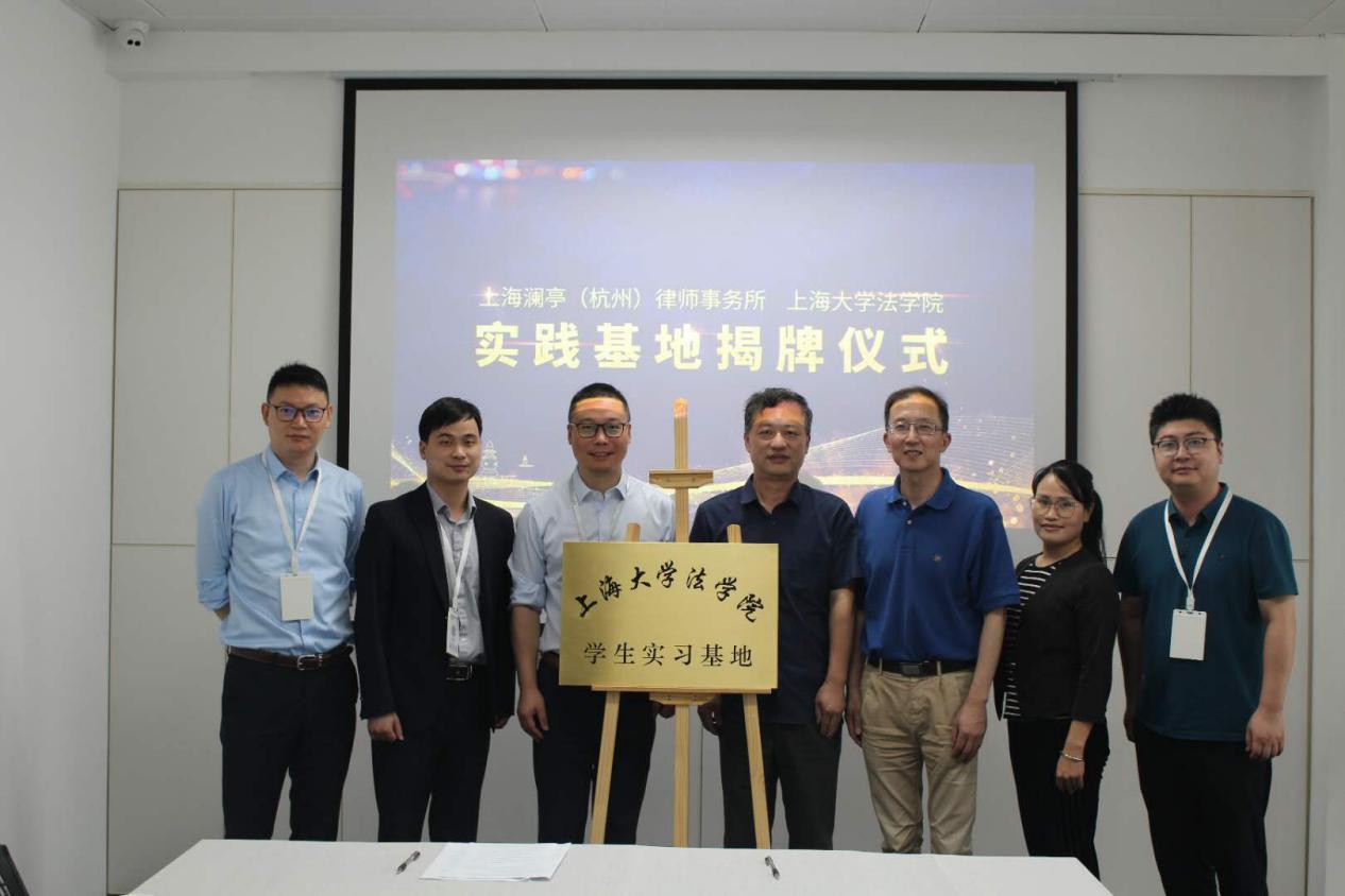 为促进法律学术与实务交流及人才培养,经澳门pg官方电子平台17届校友袁薇的联络推进,6月16日,澳门pg官方电子平台上海澜亭(杭州)律师事务所“学生实习基地”签约揭牌仪式在上海澜亭(杭州)律师事务所举行。上海澜亭(杭州)律师事务所主任鲍乐东、CEO周辉、副主任金晶、黄金苹、澳门pg官方电子平台党委书记徐国明、院办主任贺斌、团委书记林建玲出席仪式。