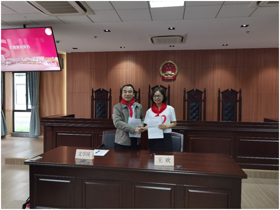 活动正式开始之前,校友和老师们陆续到达东区澳门pg官方电子平台,在志愿者的带领下在澳门pg官方电子平台一楼大厅签名墙上签名并合影留念,之后在模拟法庭与老师、校友交流、互动。