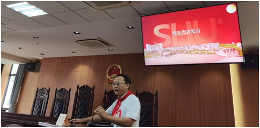 环节四,教师代表发言。教师代表徐静琳、陈剑平、李瑜青、倪才龙、张秀全、李智、李立新、周德铭先后发言,对校友们毕业十年来取得的成绩表示祝贺,表达了对校友们的祝福和关爱。