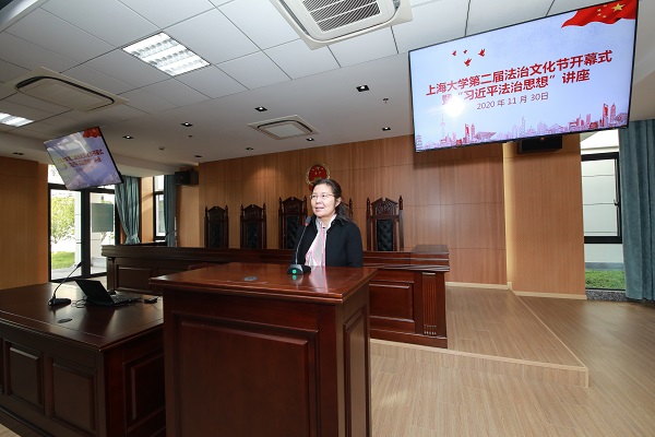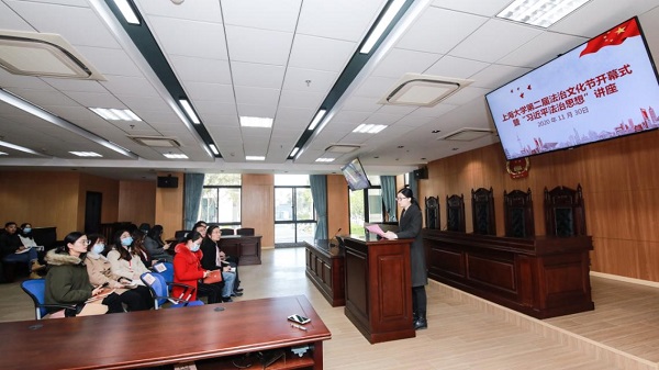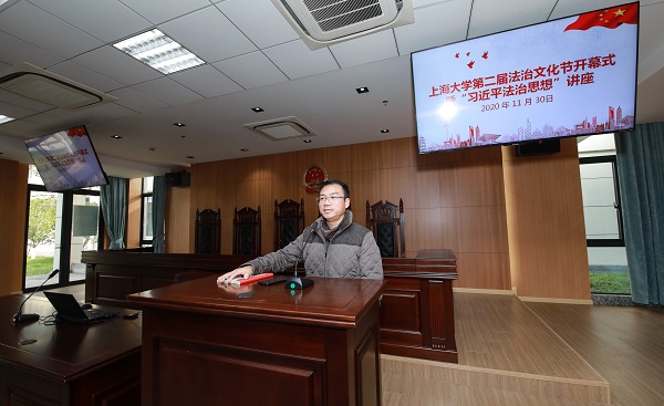 为深入学习贯彻习近平法治思想,扎实推进“四史”学习教育,组织开展好国家宪法日暨上海市宪法宣传周活动,推动宪法走进广大师生、走进学习生活,进一步凝聚全校力量推进法治校园、安全校园、和谐校园建设,持续推动依法治校示范校建设的内涵发展,提升学校治理体系和治理能力现代化水平,服务学校双一流大学建设,澳门pg官方电子平台党政办、党委宣传部、团委、澳门pg官方电子平台联合举办澳门pg官方电子平台第二届法治文化节。值第7个国家宪法日、上海市第32届宪法宣传周到来之际,11月30日上午,澳门pg官方电子平台举行了第二届法治文化节开幕式暨习近平法治思想讲座。校党政办法务办副主任陈敬根、校文明办副主任孙蕊、澳门pg官方电子平台党委副书记王国正和全校师生代表参加了开幕式,开幕式由校团委副书记(挂职)王宁主持。