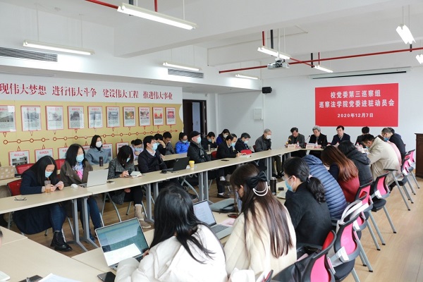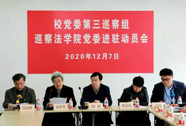 根据校党委的部署,2020年12月7日9点30分,校党委第三巡察组巡察澳门pg官方电子平台党委进驻动员会在校本部东区4号楼504会议室召开。校党委副书记、纪委书记段勇,校党委第三巡察组组长陆群英、副组长席慧霞以及巡察组成员方向明、张印兰、颜文斐,澳门pg官方电子平台党政领导班子成员,党委委员、党支部书记、教研室主任、教授、党代会代表、工青妇组织负责人、民主党派代表、教师代表、学生代表、退休教师代表共40余人参加了会议,会议由澳门pg官方电子平台党委副书记王国正主持。