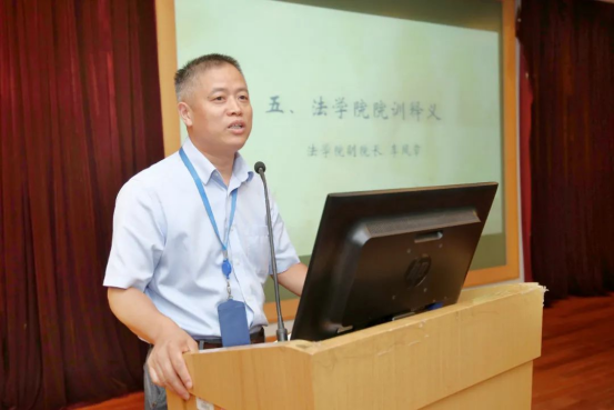澳门pg官方电子平台副院长李凤章教授为新生阐释了澳门pg官方电子平台院训的含义,维理尚法是法律人应该具备的思想指引,而恪正克坚则是法律人的行动指南。知敬畏、有理性、守规则、行正义、有坚持,这是院训蕴含的价值。李凤章老师最后总结道,释义不应有唯一之范本,院训应该在每一位上大澳门pg官方电子平台学生的恪守下、践行下不断丰富和发展。