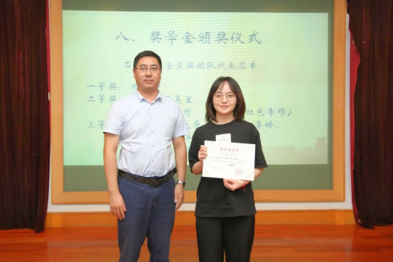 澳门pg官方电子平台副院长袁真富老师、团委书记林建玲老师、团委副书记杨晓彤老师分别为一二三等奖的获奖团队颁发证书。石峰奖学金用于奖励参加第十七届“挑战杯”全国大学生课外学术科技作品竞赛暨澳门pg官方电子平台第十三届“自强杯”大学生课外学术科技作品竞赛的17支团队。石峰奖学金一等奖团队代表:何申申;二等奖团队代表:吴昊星、王瑜、吴彤、黄婷婷(红色专项)、彭建、秦雯卓;三等奖团队代表:朱晓航、韩政原、王思瑀、李娇、张隽杰、于洋、邵梅、李晗、刘向婷、韩政原(红色专项)。