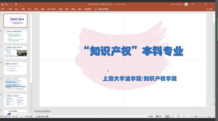之后进行了朋辈交流环节。柏依洋同学和白居政同学先后结合自身的学习经历、相关法律知识分别对知识产权专业和法学专业进行了朋辈分享。