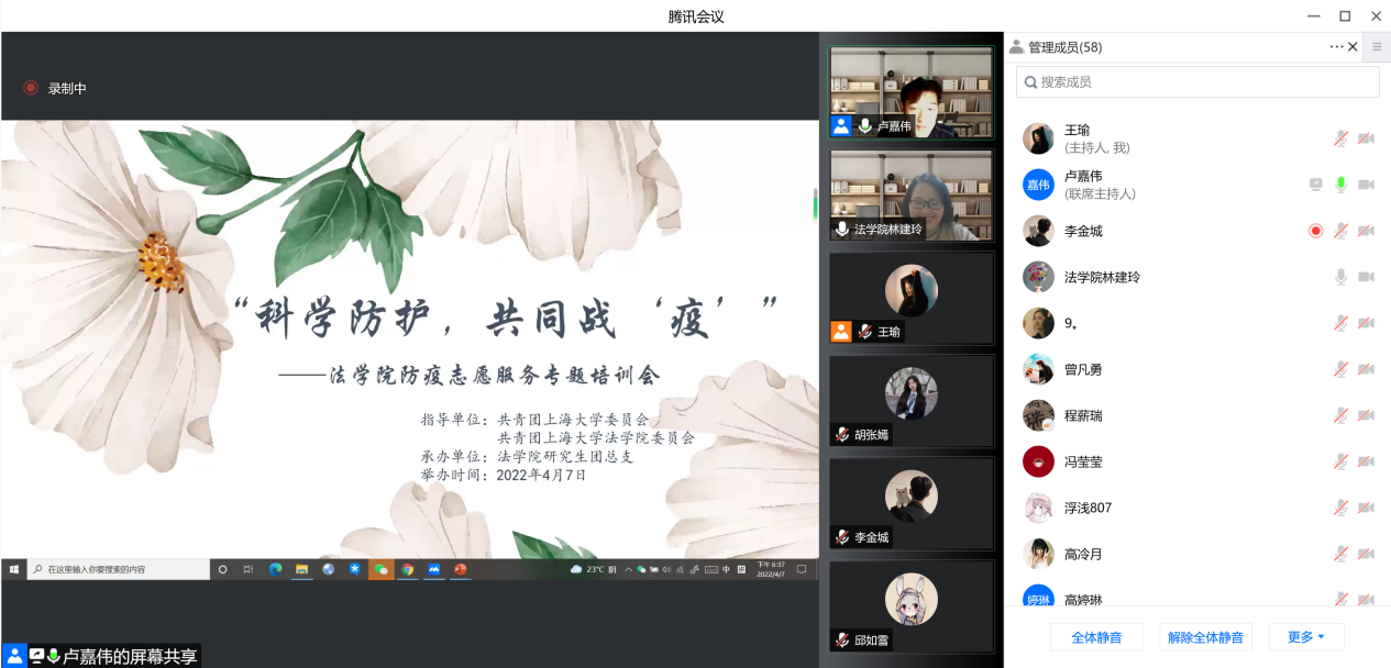 活动伊始,大家一同观看了澳门pg官方电子平台研究生原创歌曲MV《青春守“沪”》,一起在歌声中体会以青春力量守护上大校园,以使命担当守“沪”光荣之城的抗疫力量,也使大家对疫情之后的美好生活心生期待。