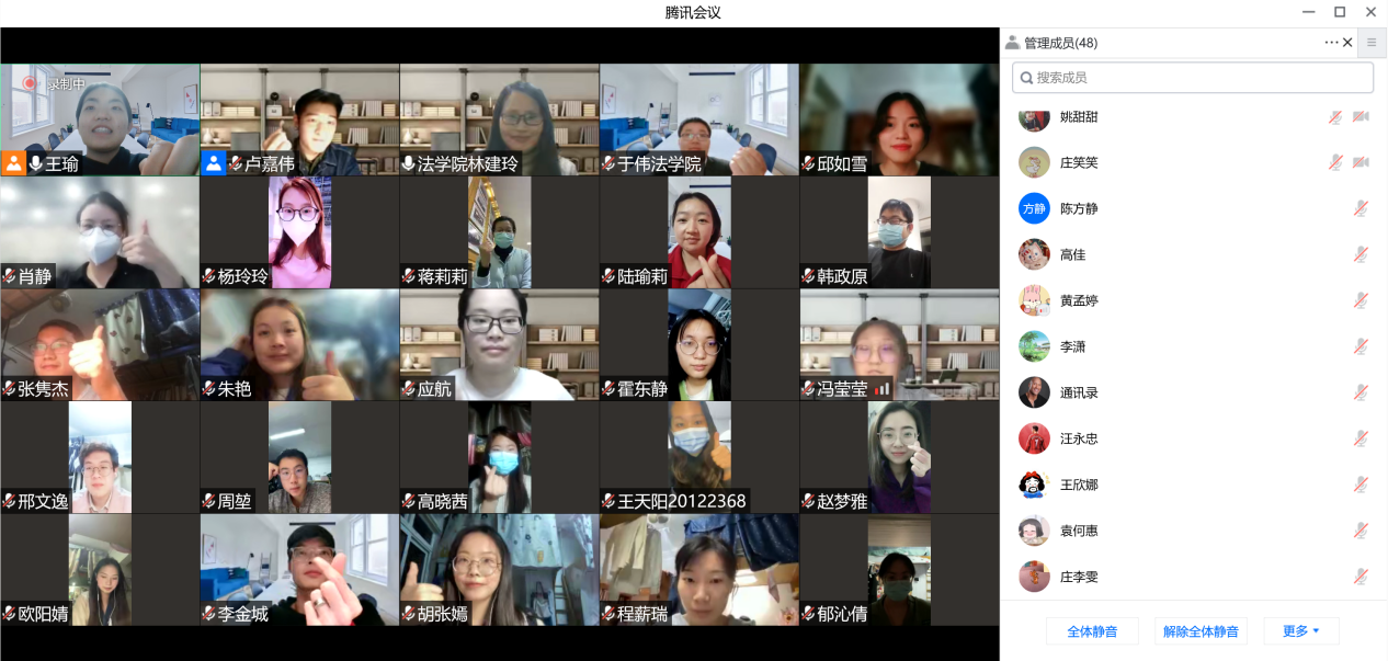 本次专题培训会在大家暖心的“云合照”中落下帷幕。希望澳门pg官方电子平台各位团学骨干和志愿者们牢记老师们的嘱托,在疫情防控的特殊时期,发挥积极带头作用,披坚执锐、攻坚克难,发出好声音、传播正能量。相信这场“倒春寒”终是过往云烟,期待必将到来的美好明天!