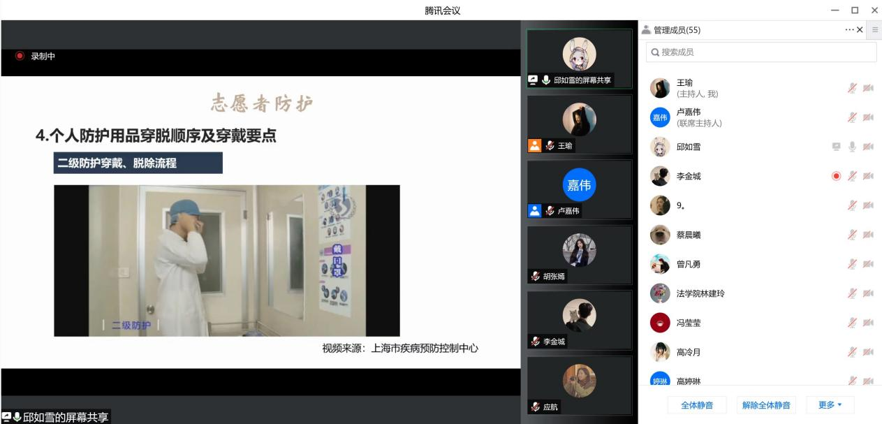 疫情以来,澳门pg官方电子平台有大量青年志愿者奋战在一线,协助学校开展疫情防控,在辅助核酸检测、社区封控、物资搬运等各个岗位贡献力量。2021级研究生邱如雪同学为大家介绍了志愿者防护部分的注意事项。