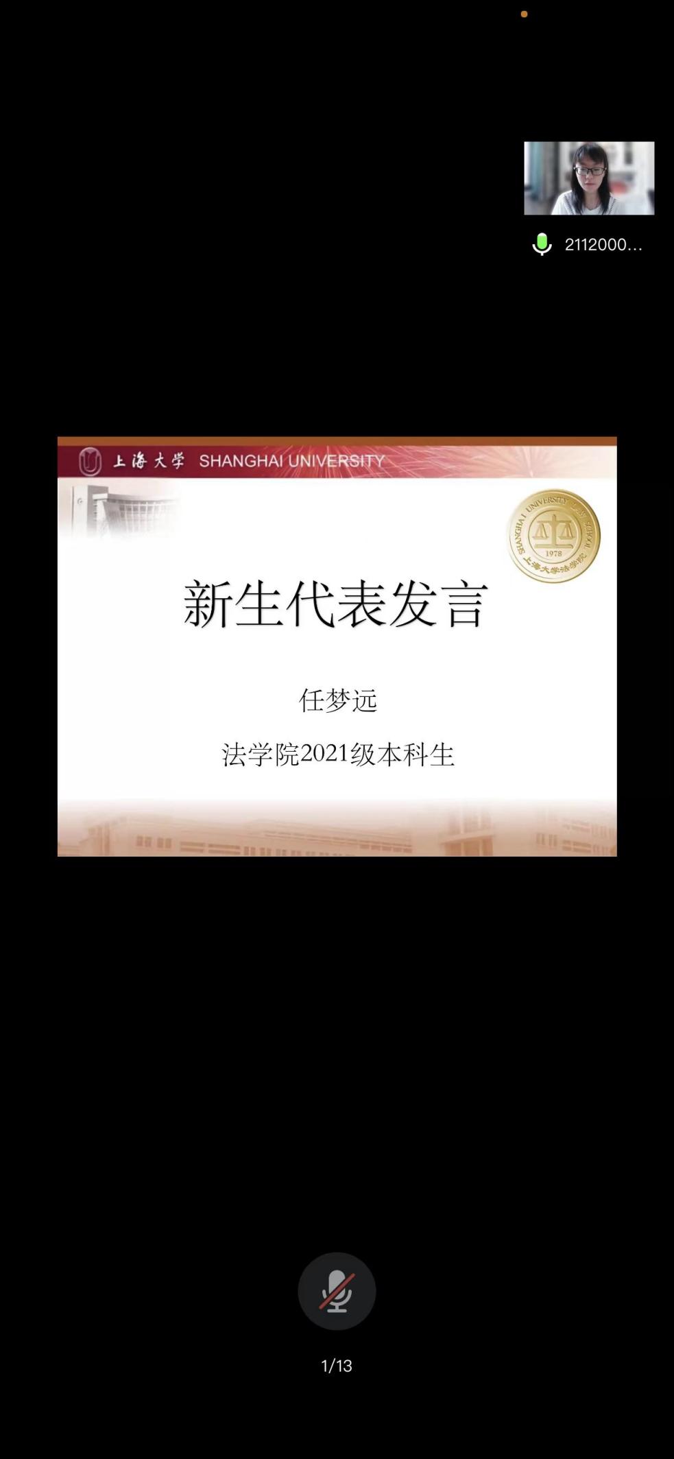 澳门pg官方电子平台2021级本科生任梦远同学代表全体新生发言。她提到,2021级本科新生带着不同的选择理由走进澳门pg官方电子平台,将要面对同样的困难和挑战,一起收获知识,拓宽视野,共同进步。2021级本科新生将用求知的艰辛和积累的快乐来填充我们生命的颜色,放飞青春的梦想,创造更加辉煌的明天。在未来的学习与生活中应当将豪情壮志与严谨的学术态度结合起来,将如火热情与脚踏实地的风格结合起来,忠于宪法、践行法律。