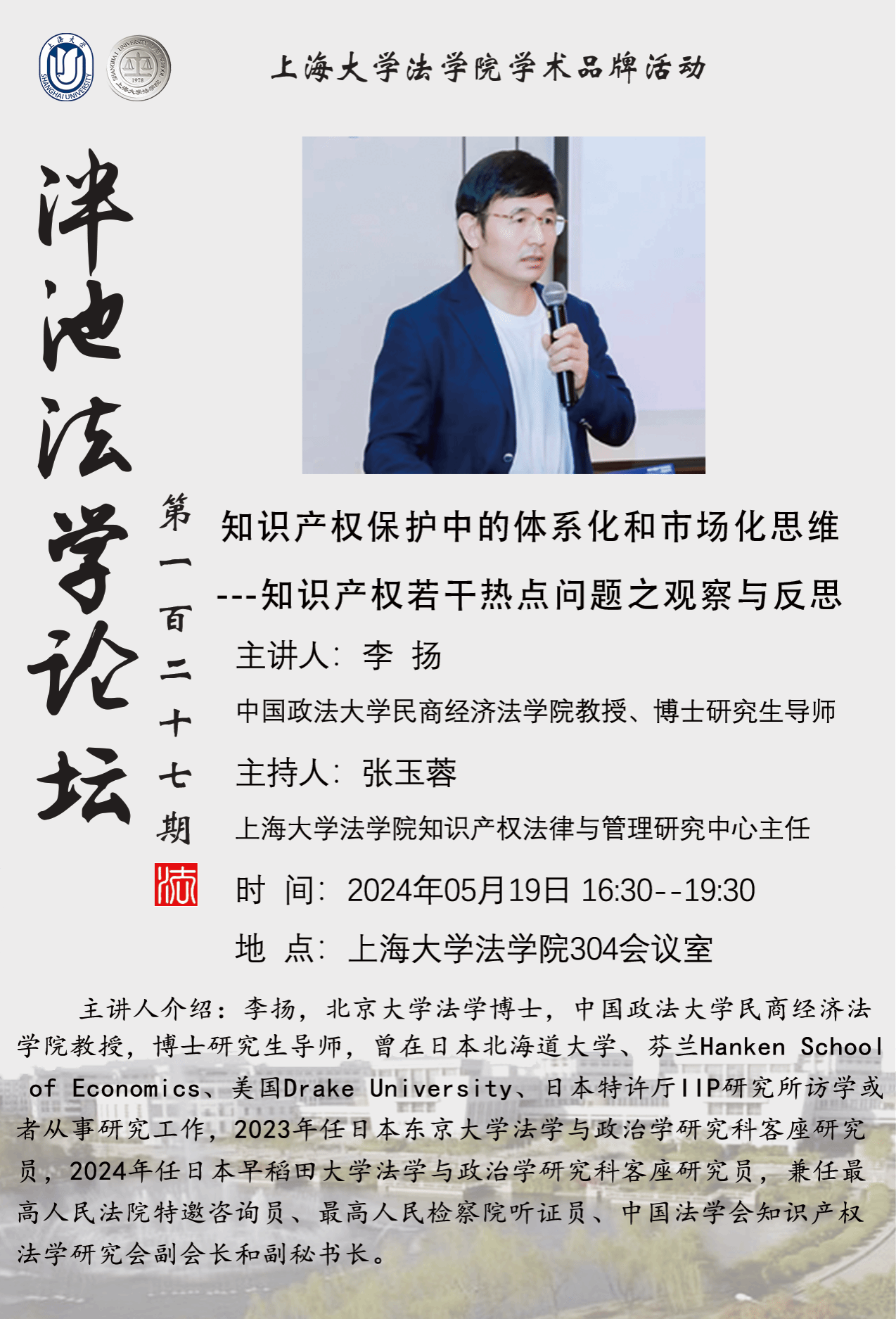 泮池法学论坛第127期:知识产权保护中的体系化和市场化思维——知识产权若干热点问题之观察与反思