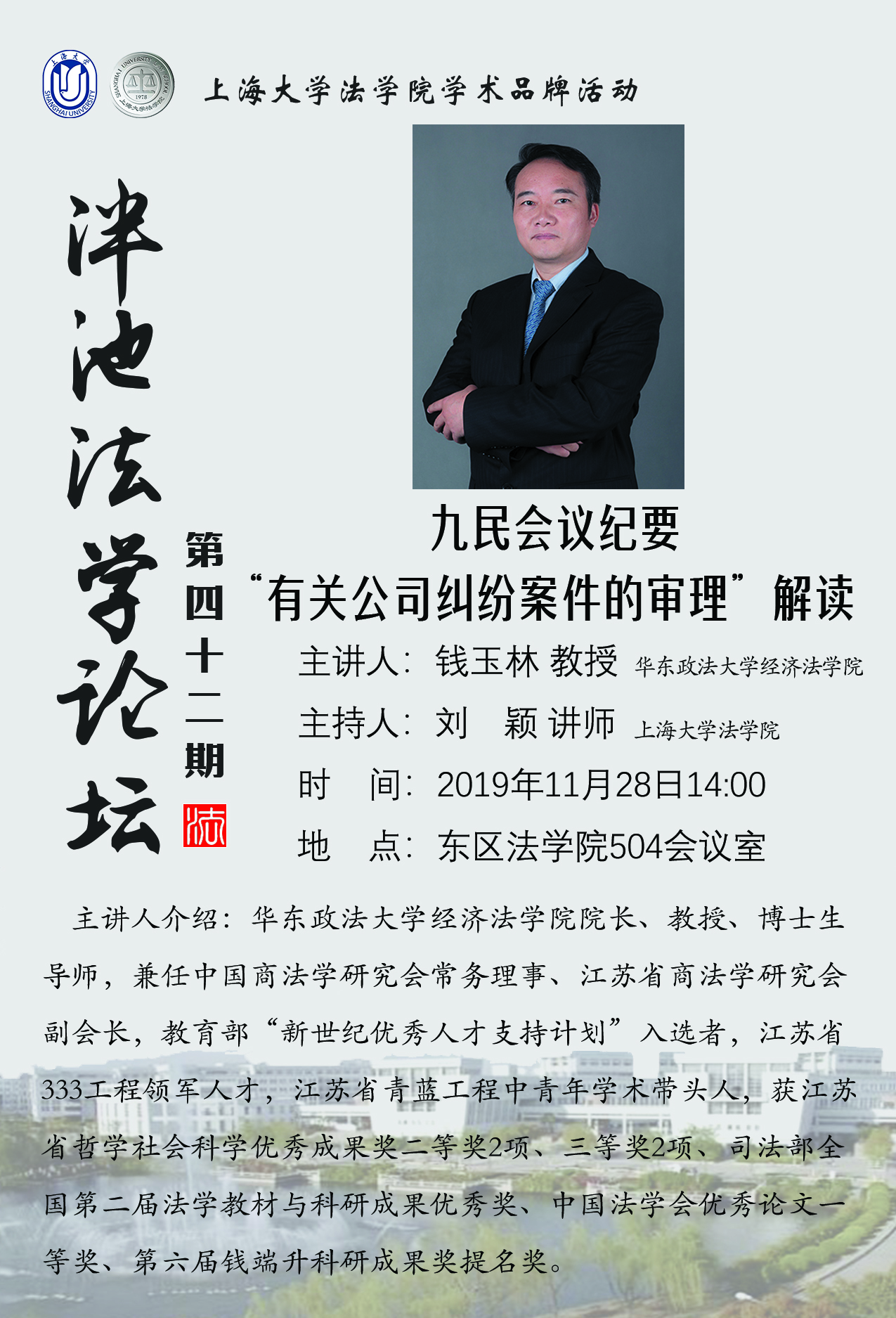 泮池法学论坛第42期预告:九民会议纪要“有关公司纠纷案件的审理”解读