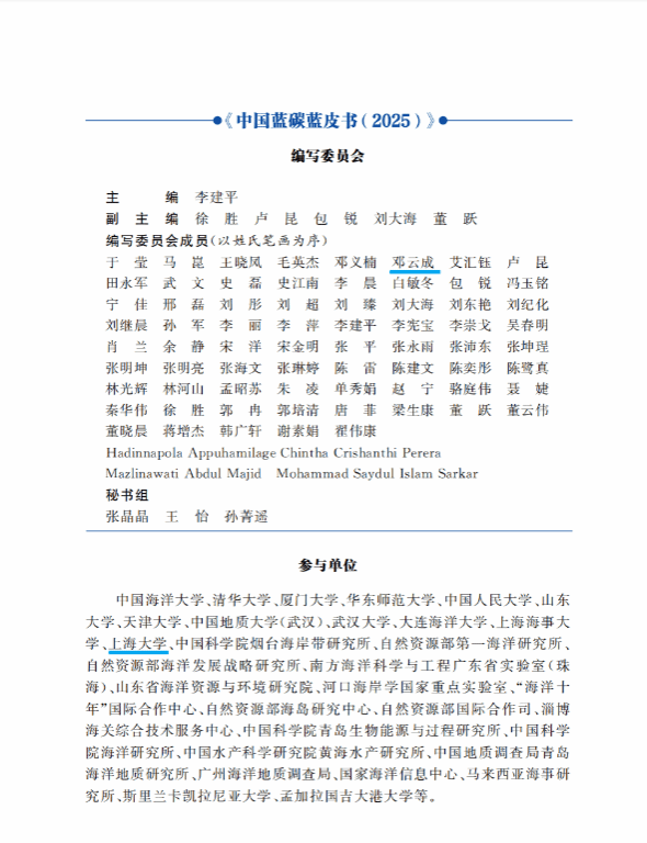 近日,《中国蓝碳蓝皮书2025》正式刊印,澳门pg官方电子平台邓云成副研究员参与相关章节编写,也是澳门pg专家首次受邀编写蓝碳蓝皮书。