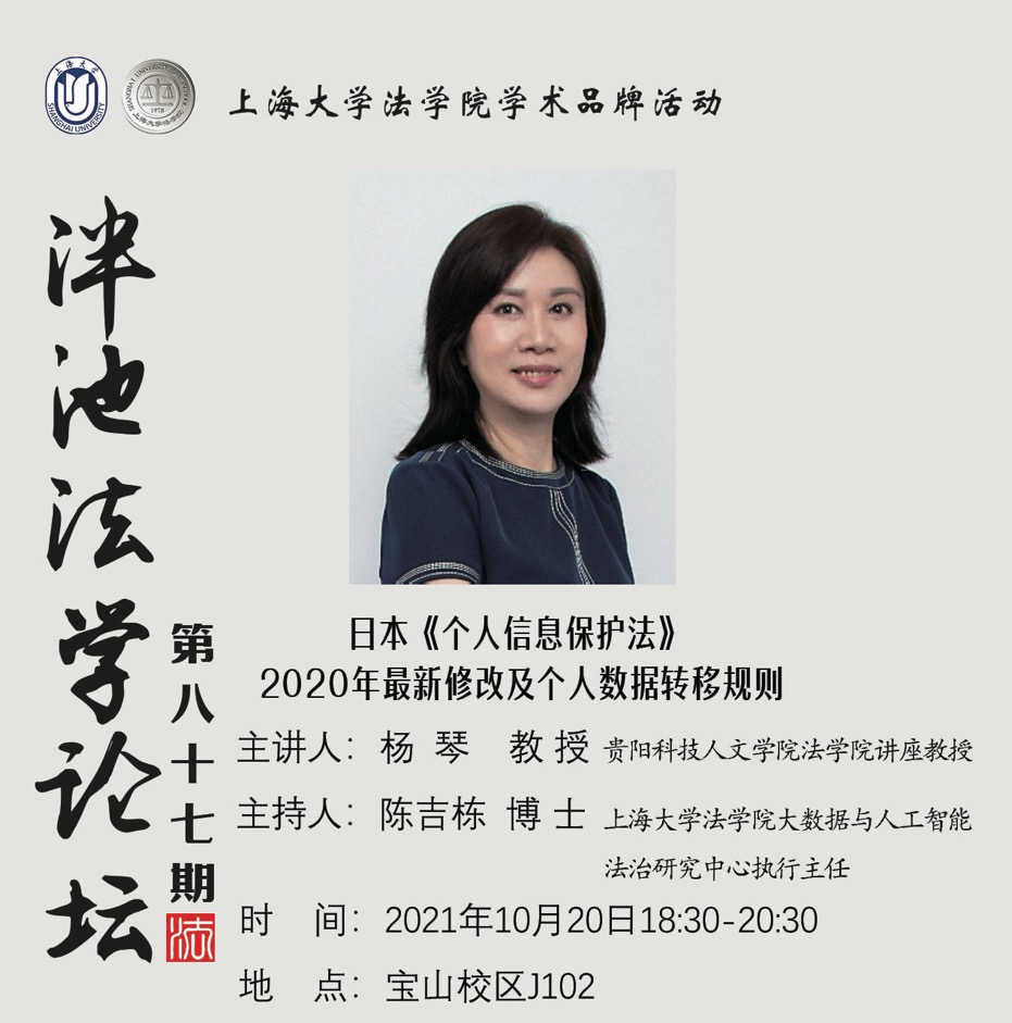 泮池法学论坛第87期预告:日本《个人信息保护法》2020最新修改及个人数据转移规则