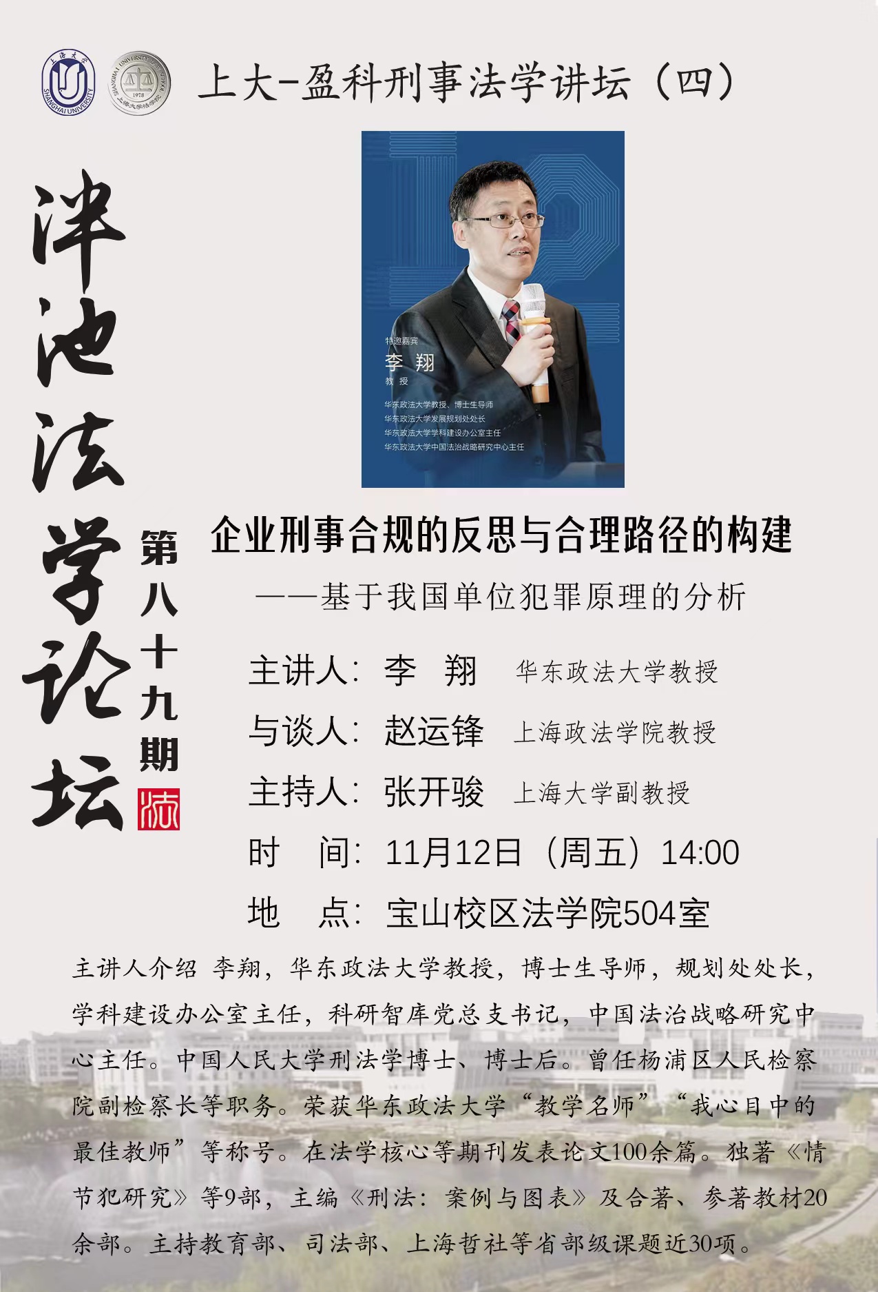 泮池法学论坛第89期预告:企业刑事合规的反思与合理路径的构建