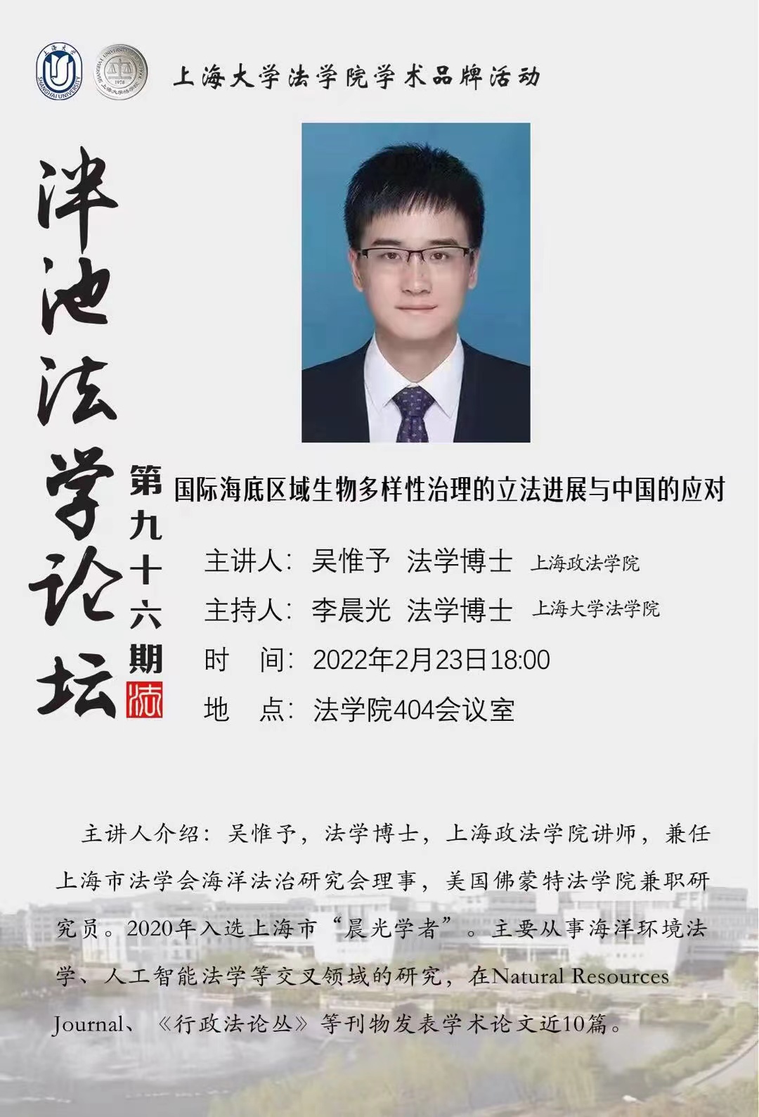 泮池法学论坛第96期:国际海底区域生物多样性治理的立法进展与中国的应对