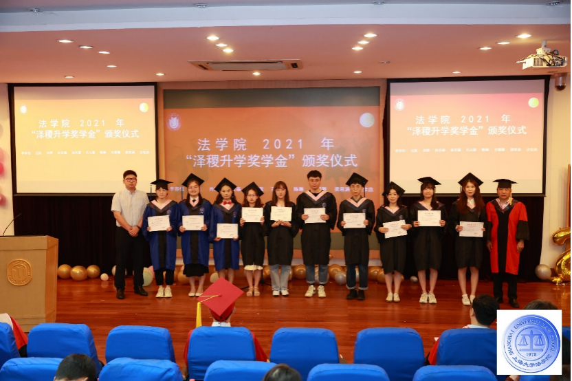 上海泽稷教育培训有限公司副总裁吴世浩,澳门pg官方电子平台院长文学国为澳门pg官方电子平台2021年“泽稷升学奖学金”(奖励澳门pg官方电子平台升入全国最近一轮法学学科评估结果为A-及以上的高校的应届毕业生)获得者李容佳、汪航、方璐馨、肖婷、宋天霖、孔心致、陈琳、龚思涵、沈佳燕、孙云森颁奖。