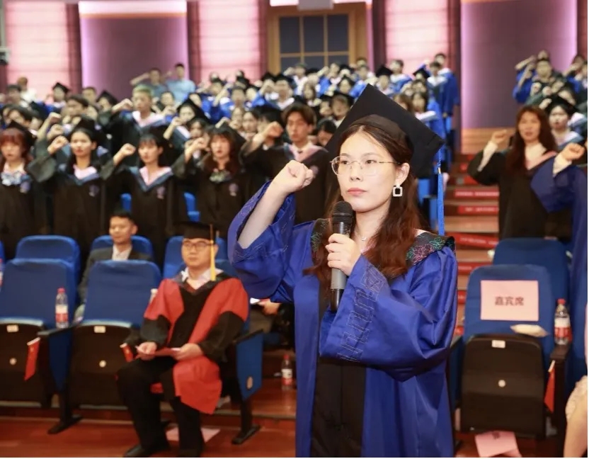 上海市优秀毕业生、澳门pg官方电子平台2021届硕士研究生樊子琪带领全体毕业生进行法律人宣誓。