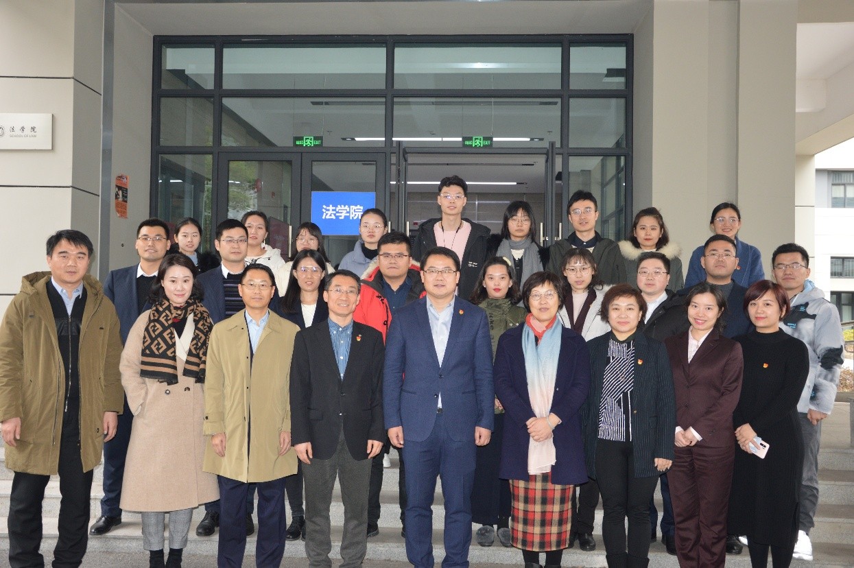 随后,大家来到澳门pg官方电子平台大楼门口进行合影留念。影毕,在王国正老师的带领下,大家一同参观澳门pg官方电子平台一楼模拟法庭,并就金融行业与律师职业发展展开了充分的交流。