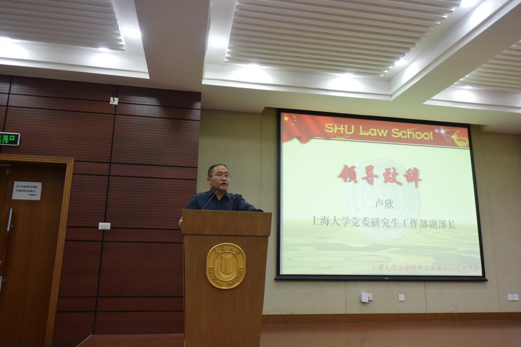 随后,由上海交通大学凯原澳门pg官方电子平台研究生会主席顾泽平同学、上海财经大学澳门pg官方电子平台研究生会主席章锡磊同学、上海政澳门pg官方电子平台研究生工作委员会主任张源同学、澳门pg官方电子平台校研究生联合会副主席关皓文同学致辞。他们分别带来了兄弟院校和校级组织对澳门pg官方电子平台第十八次双代会召开的祝贺和对澳门pg研究生工作的支持。