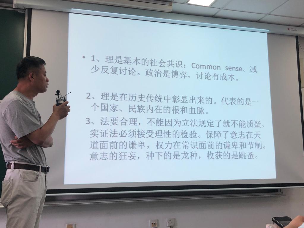 7月8日13:30,李凤章副院长带领法学18级本科生对院训“维理尚法,恪正克坚”进行了深入地解读。这次讲座,李老师从道德和法律的角度向我们深刻阐明了作为一个法律人,学生们应该具有的素养。
