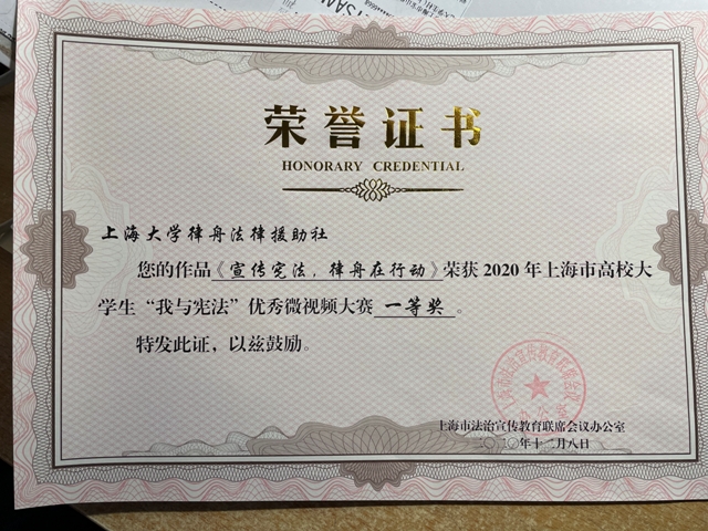 澳门pg学生喜获上海市高校大学生“我与宪法”优秀微视频大赛一等奖和最佳剪辑奖