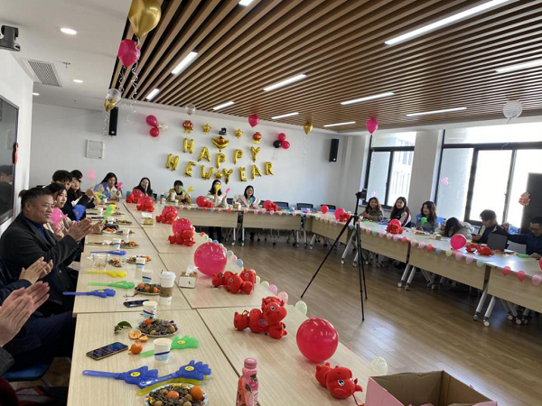 在本次座谈中,还开展了很多趣味的互动小游戏,如:拍七令、你演我猜、争先恐后吃饺子等,大家都热情高涨,积极地参与其中,整个联欢活动充满了欢声笑语。