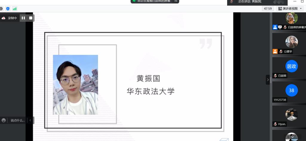彭建同学从怎么看待考研、法考与考研的关系以及如何检验背书效果三个方面进行了分享。他将自己对考研的深刻认识娓娓道来,指出考研过程中目标越远大则会对自己越怀疑,并提出努力和进步是克服自我怀疑的根本方法。随后,他告诉同学们可以勇敢尝试,抓住法考和考研的机会。最后他详细介绍了三轮记忆以及检验背诵效果的具体标准。彭建同学的分享深入浅出,从对深刻的灵魂体验出发,落脚到具体可行的方法和标准上,同学们深表受益匪浅。