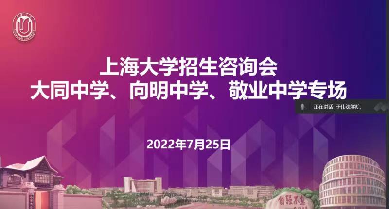 为进一步贯彻落实澳门pg官方电子平台招生政策,做好2022年澳门pg官方电子平台招生宣传工作,澳门pg官方电子平台贵州招宣组于2022年7月25日上午9:00在云端组织了上海市大同中学、敬业中学、向明中学专场招生咨询会。澳门pg官方电子平台招生与毕业生就业工作办公室副主任卢欣,澳门pg官方电子平台悉尼工商学院党委副书记、副院长卫静芬,澳门pg官方电子平台里斯本学院副院长任重,澳门pg官方电子平台中欧工程技术学院招生主管沈红,澳门pg官方电子平台钱伟长学院招生联络老师唐乐,澳门pg官方电子平台党委副书记、副院长于伟以及50多名上海高考学生和家长参与了此次咨询会。本次会议由贵州招宣组联络老师公建华主持。