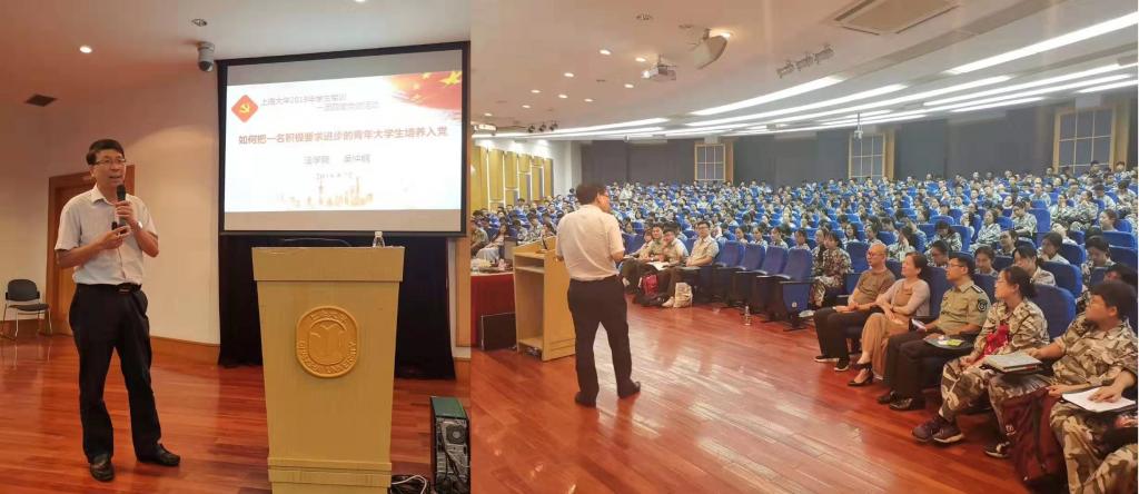 学院高度重视学生军训,吴仲钢书记到训练场地亲切慰问澳门pg官方电子平台参训学生、教官、带训教师和指导员,并出席一团四营“不忘初心、立时代潮头”主题党团活动,为同学们上题为“如何把一名积极要求进步的青年大学生培养入党”的党课,指导学生不忘初心跟党走,积极向党组织靠拢。此外,学院派出1名辅导员和2名退伍复学学生承担带训工作,林建玲老师担任一团四营二连指导员,高梓渊和王泰分别担任一团四营一、二连的副连长,袁启东、柳婷娇、宋思潼、汪迪宣、何少敏、种瑞璇等6名同学参加军训导生工作。