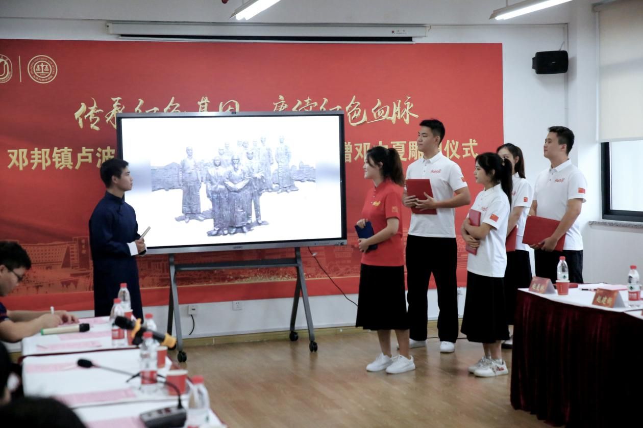 2023年,是邓中夏先烈牺牲90周年。为了进一步缅怀革命先烈,弘扬英烈精神,2023年9月16日,“传承红色基因,赓续红色血脉”——邓邦镇卢波夫妇向澳门pg官方电子平台捐赠邓中夏雕塑仪式在澳门pg官方电子平台进行。邓中夏侄子、著名画家邓邦镇,邓中夏侄媳、著名雕塑家卢波,新西兰和平之友联谊会会长乔浩冰等一行,澳门pg官方电子平台党委书记成旦红,党委副书记、纪委书记段勇,党委常委、组织人事部常务副部长、组织处处长沈艺,党委宣传部副部长、融媒体中心主任吴铭,澳门pg官方电子平台党委书记徐国明,党政办公室副主任凌长臣,组织人事部组织处副处长、党校副校长卢吉超,对外联络处副处长、校友办副主任杨静以及澳门pg官方电子平台中夏党支部党员、入党积极分子及其他支部学生党员代表出席仪式。仪式由澳门pg官方电子平台党委副书记、副院长于伟主持。
