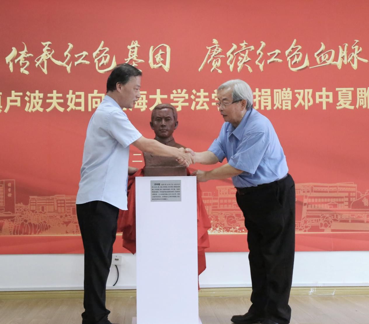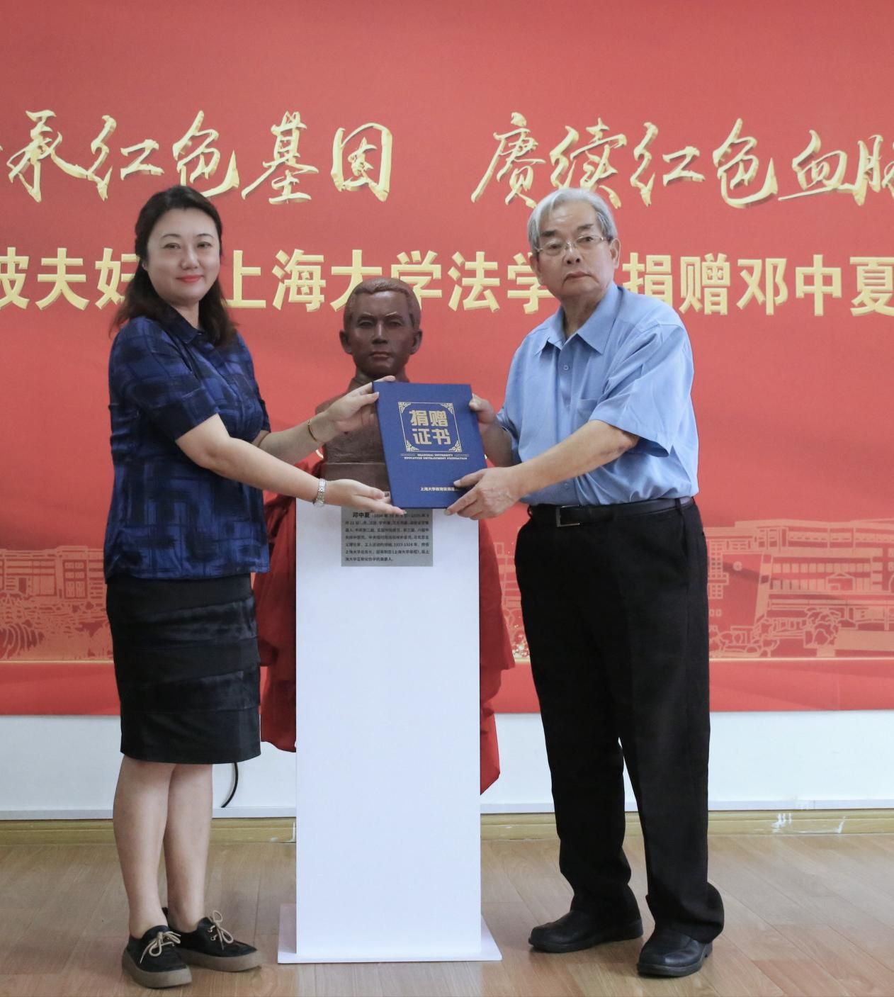 澳门pg官方电子平台沈艺部长对邓邦镇卢波夫妇的慷慨捐赠表示感谢,指出邓中夏先生在老上大时期对澳门pg官方电子平台作出的卓越贡献,希望中夏党支部不负“中夏”之名,传承好发扬好红色精神。