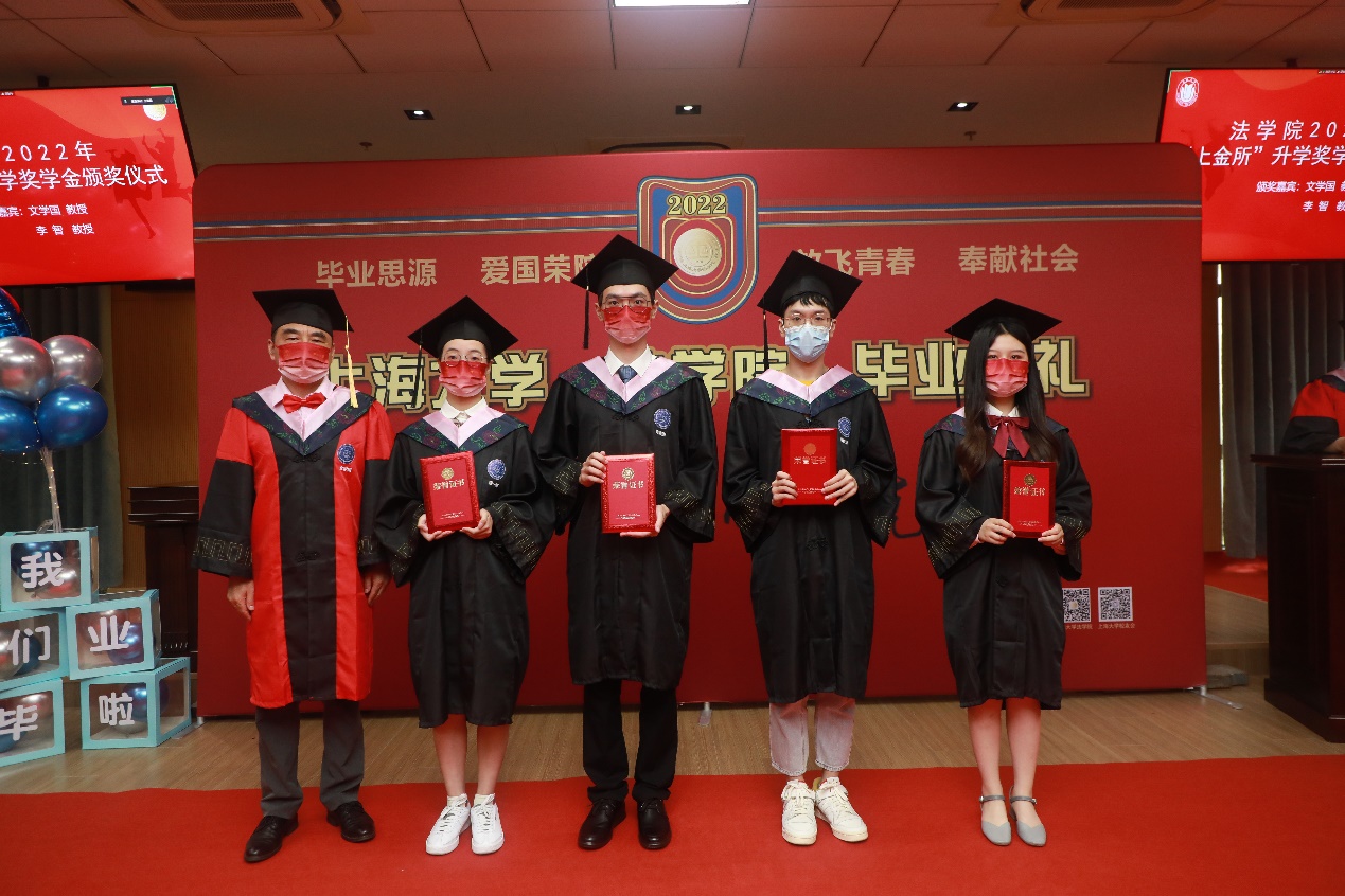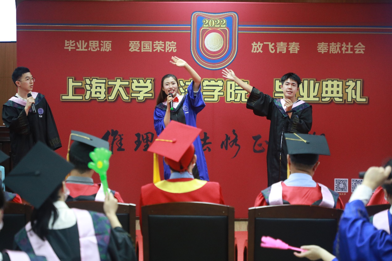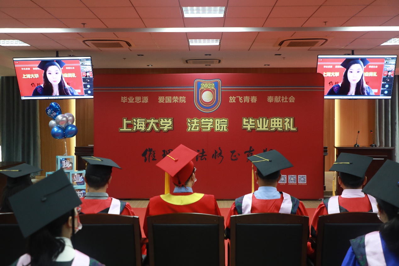 7月5日,澳门pg官方电子平台2022年毕业典礼暨学位授予仪式在宝山校区东区澳门pg官方电子平台模拟法庭成功举办,澳门pg官方电子平台2022届本研毕业生、学生家长和学院老师共计300余人线上线下共赴毕业之约。