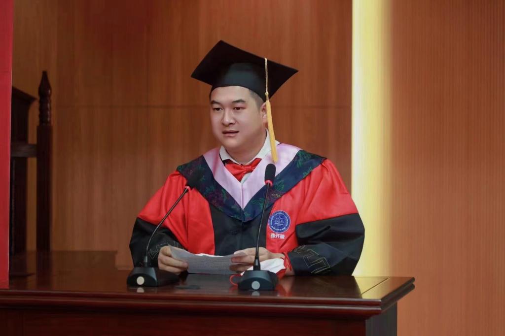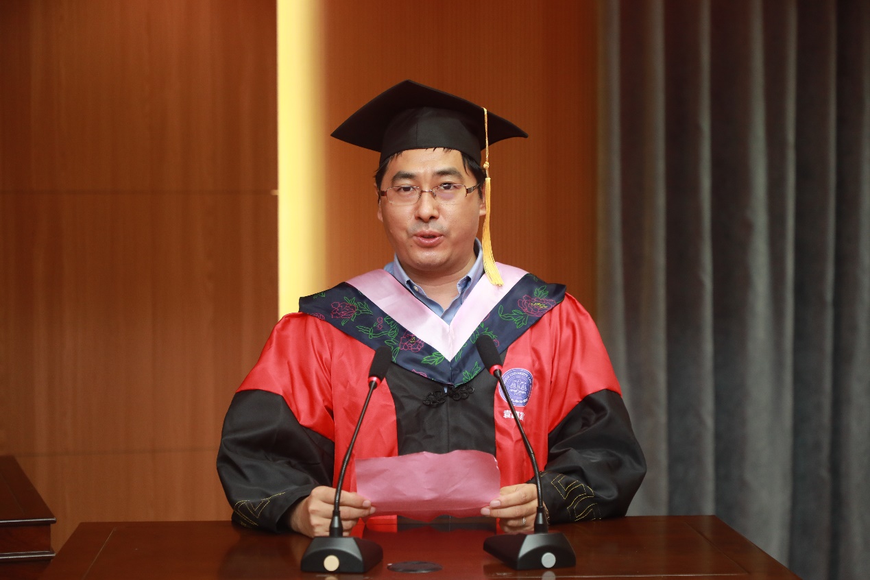 在收看澳门pg官方电子平台老师们给毕业生送上的毕业寄语视频后,澳门pg官方电子平台教师代表张开骏副教授为大家送上临别寄语。他希望毕业生们“达则兼济天下,穷则独善其身”,越是艰难心中越要充满理想和正义,充满家国情怀、社会责任感和历史使命感,始终信仰和践行法治,为法治中国建设而不懈奋斗。