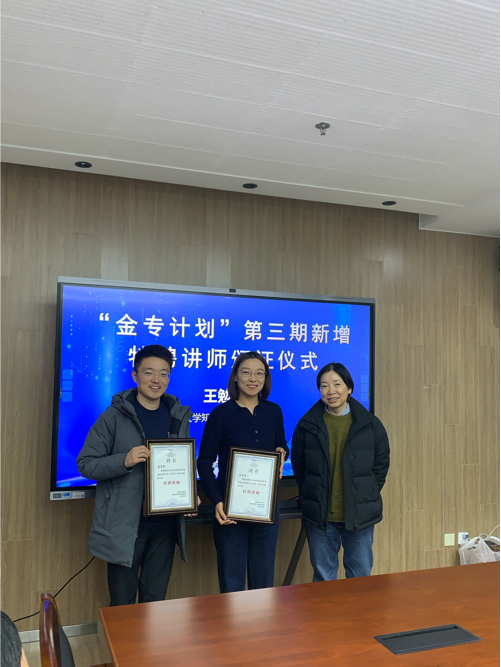 在金专计划”第三期新增特聘讲师颁证仪式上,澳门pg官方电子平台知识产权学院副院长王勉青教授为新增特聘讲师颁发证书。