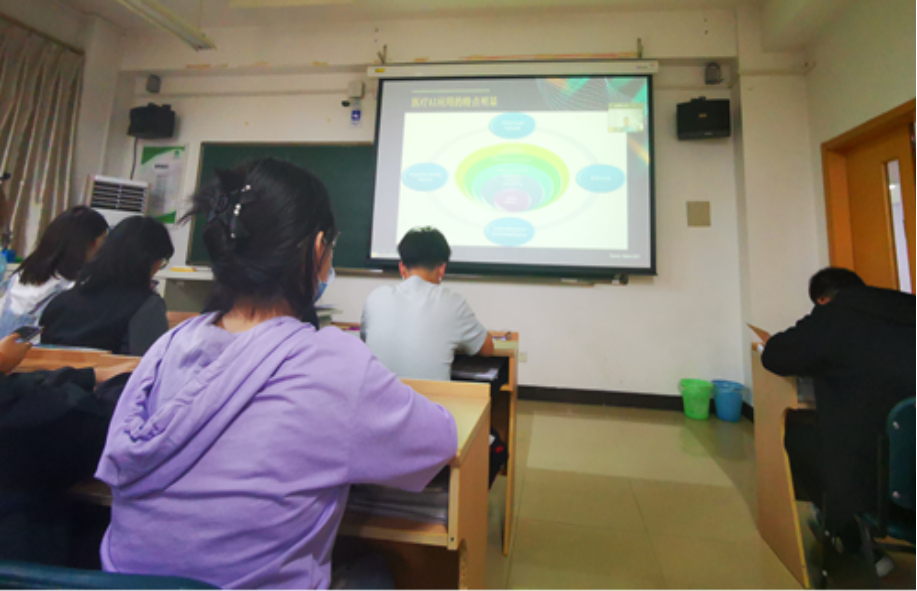 随着现代科技技术以及信息化手段的飞速发展,人工智能得到了越来越多的重视,并已经应用于社会的多个领域。在本次课程中,郭博士给同学们介绍了医疗器械领域应用人工智能技术的情况,AI不仅能有效提升医疗器械的质量和应用效率,还可以创建出智能化的专家系统,为病人提供更加周到和完善的医疗服务,使学生系统了解了AI和机器人在临床护理当中的应用。