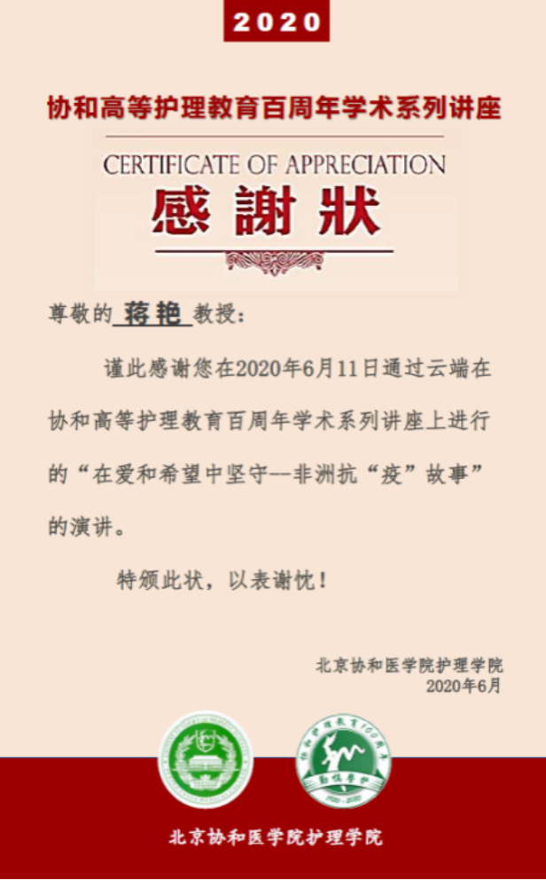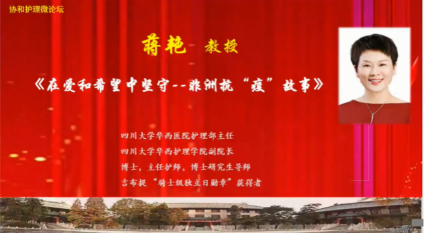 蒋艳教授为beat365中国唯一官网广大师生进行了“在爱和希望中坚守——非洲抗'疫'故事”的讲座,讲述了在新冠疫情下护理人在国际救援中的巨大专业价值和发挥的重要作用。