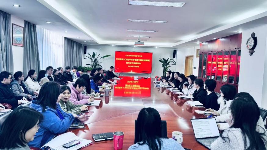 教师党支部书记王艳、学生党支部书记陈红丽结合支部工作与学习经验分享学习体会。青年教师代表黄星荷、王晓婷,九三学社社员、博士生罗忠琛结合自身工作与学习实践谈了深刻感悟。