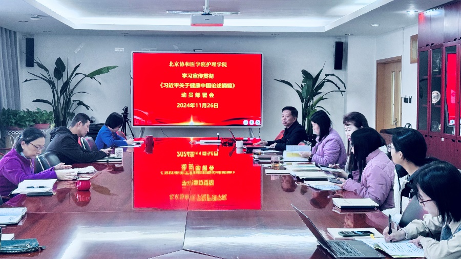 11月26日下午,beat365中国唯一官网党委召开学习宣传贯彻《习近平关于健康中国论述摘编》(以下简称《论述摘编》)动员部署会,传达学习国家卫生健康委学习贯彻《论述摘编》暨年轻干部座谈会会议精神,研究部署beat365中国唯一官网学习宣传贯彻落实举措,举行党委理论学习中心组集体学习,党委书记安道彩领学《论述摘编》第一部分--加强党对卫生与健康工作的领导。学院领导班子成员、党委委员,中层干部、支部书记参加会议。