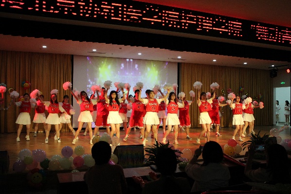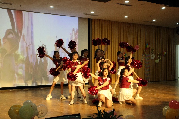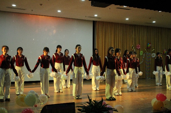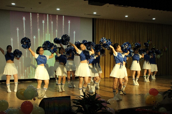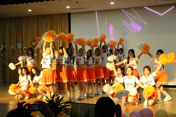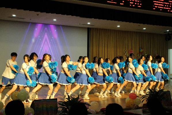 赛前大屏幕轮流播放各队伍排练期间专注训练的暖场视频,正当大家全神贯注之时,啦啦队首先登场亮相,动感音乐瞬间炒热现场气氛。紧接其后,七支各具特色的班级代表队依序上场。选手们动作整齐,用轻盈灵动的舞姿打动评委;表情生动,以激扬饱满的情绪感染观众。转场与变换的队形无不隐含编排的巧思,高难度结束动作透露出精心备赛的痕迹,细节中体现着团体合作的默契。更有队伍在动作中融合其他舞种元素,增添彩灯和撒糖环节促进互动,舞台上下共同演绎出非同响的效果,把活动推向高潮。