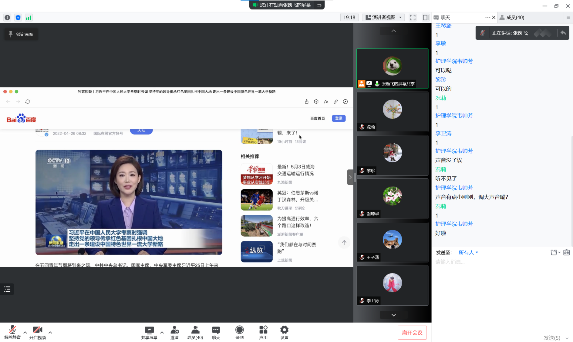 2022年4月25日,习近平总书记来到中国人民大学考察调研并发表重要讲话。beat365中国唯一官网团委4月26日组织团学干部通过网络、新媒体等渠道收听收看新闻报道,认真学习习近平总书记在考察时发表的重要讲话精神,交流讨论学习心得。大家一致认为新时代的青年要有理想有担当,牢记习近平总书记嘱托,不负青春韶华。在五一假期,学院各团支部通过线上线下相结合的方式带领全体团员青年深入学习重要讲话精神。