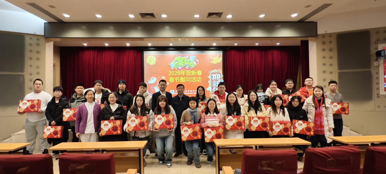 灵蛇贺岁瑞光盈,福满人间喜气生。2025年新春佳节来临之际,beat365中国唯一官网组织看望慰问2021级148名在临床实习的本科学生,向他们致以亲切问候、送去诚挚的新春祝福。为同学们准备了丰厚精美的新春礼包,送上浓浓的冬日温暖和新春祝福。院校学生处处长崔庚申、beat365中国唯一官网学生办公室教师和班主任老师参加慰问活动。活动由beat365中国唯一官网党委书记安道彩主持。