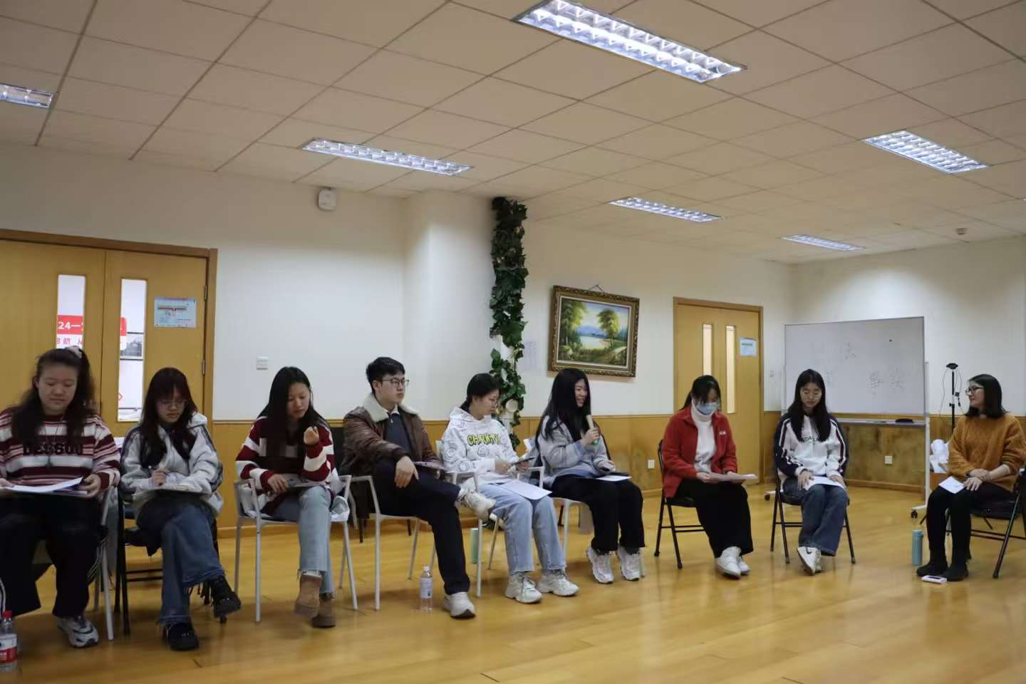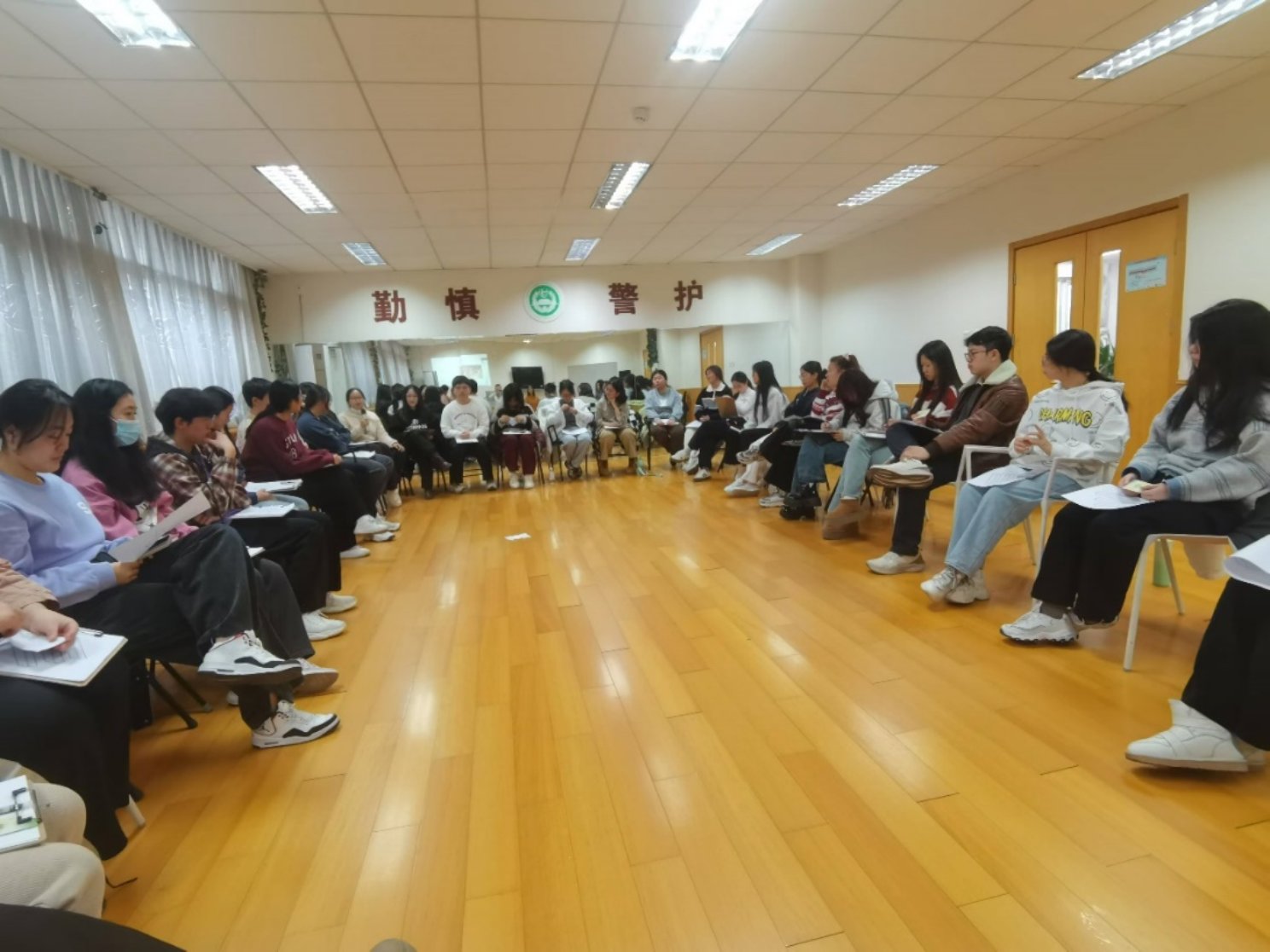 在每天课程分享环节,老师们鼓励同学分享自己的感悟与体验,同学们积极发言分享一天的学习感悟心得,以此促进彼此之间的交流与成长。分享环节老师还设置抽取正念卡牌,让同学们体会卡牌上温柔有力的话语,对每一日的训练有了更深刻的领悟。