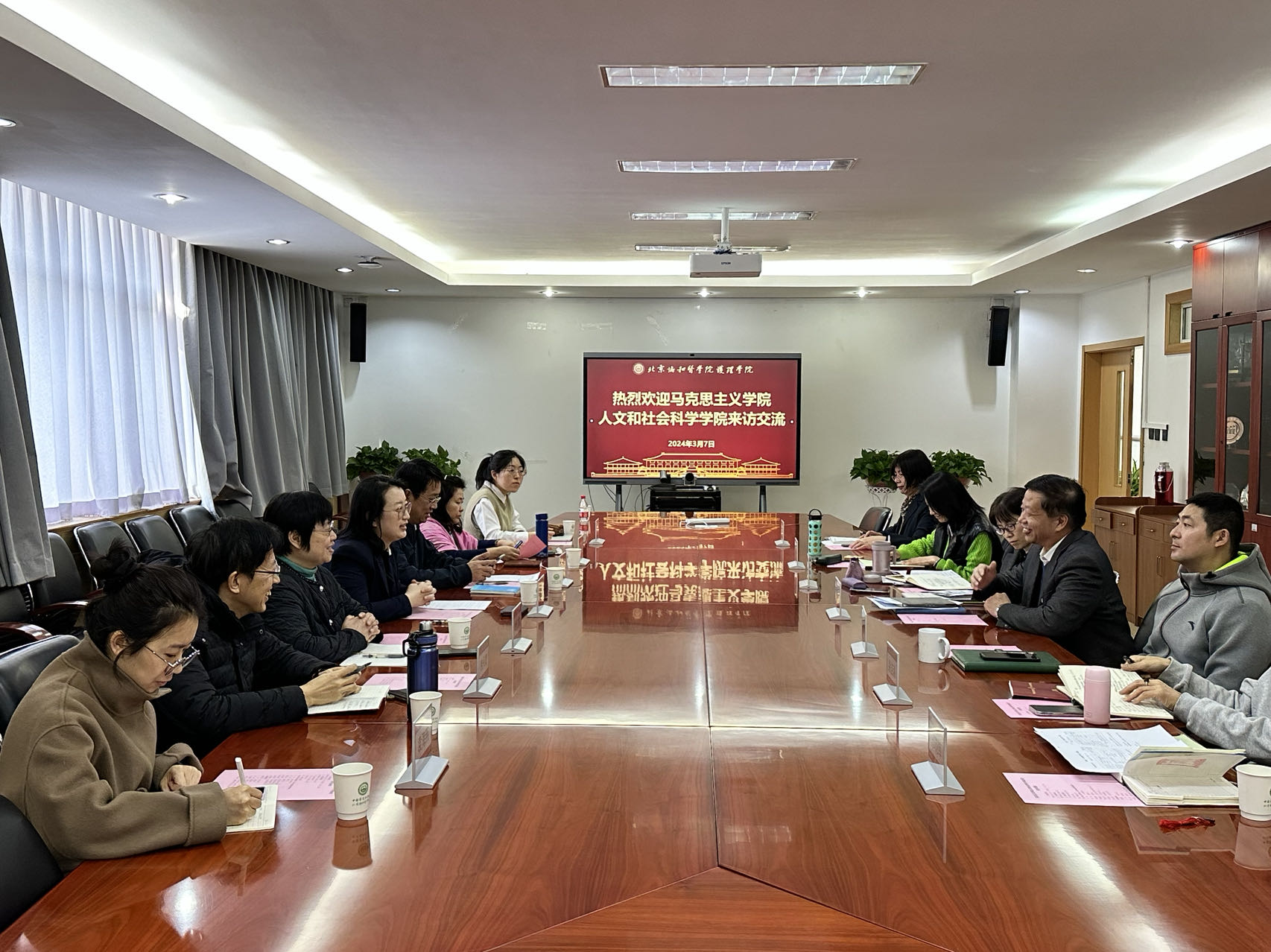3月7日上午,马克思主义学院人文和社会科学学院(以下简称“马院人文学院”)常务副院长刘欢一行到八大处校区就思政、人文等课程建设与beat365中国唯一官网老师交流研讨。马院人文学院副院长李建、胡红濮,以及职能部门负责人和教师代表,beat365中国唯一官网副院长梁涛、王欢,以及教学科研办公室负责人参加会议。交流研讨会由beat365中国唯一官网党委书记安道彩书记主持。