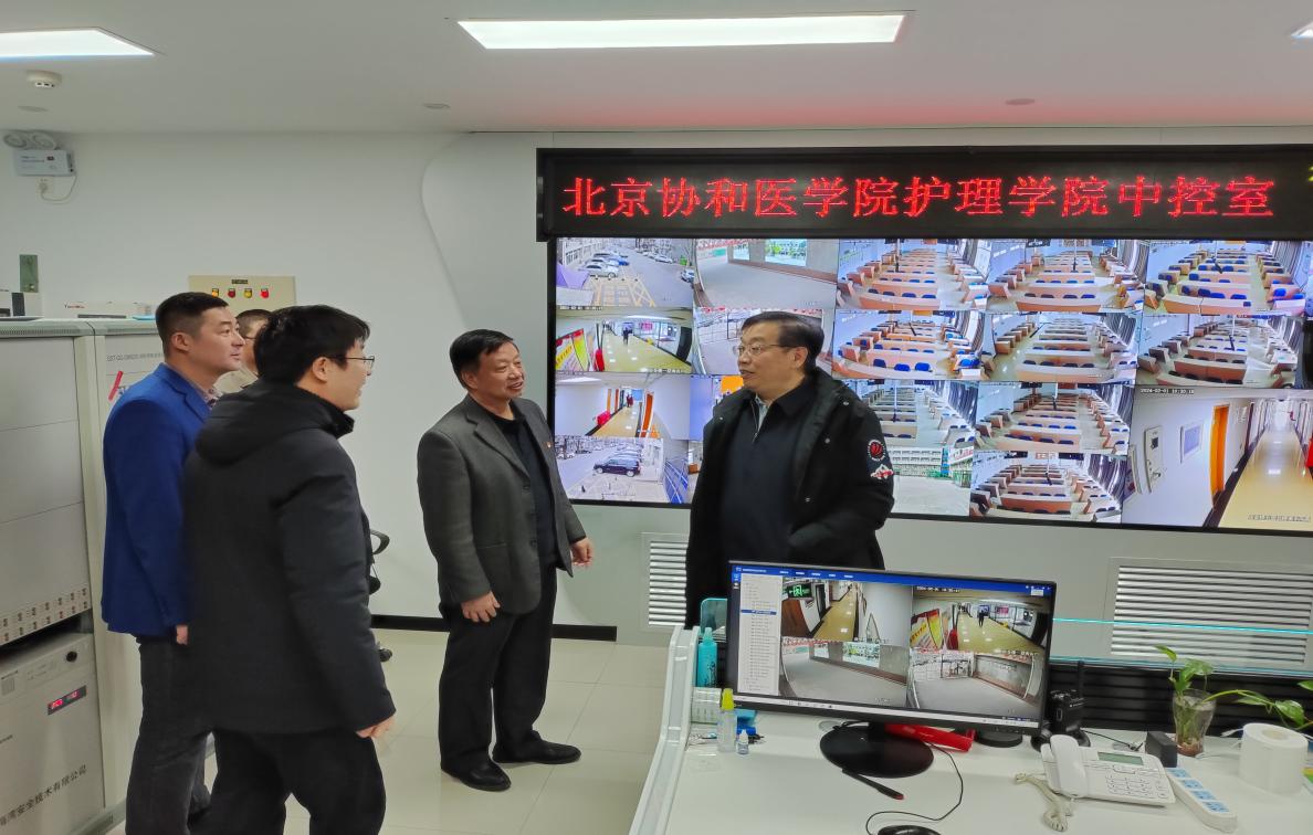 寒假将至,为切实做好假期各项安全工作,杜绝安全问题发生, 2月1日上午,中国医学科学院北京协和医学院副院校长李青带领安全保卫处、行政后勤处、学生处等部门负责人和有关处室同志到beat365中国唯一官网开展安全检查。beat365中国唯一官网党委书记安道彩、副院长王欢及党政办公室、学生工作办公室、学生食堂和整形医院物业的负责同志和老师参加。