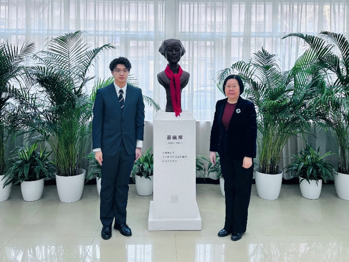 图 李峥院长和学生代表为聂校长雕像敬系围巾
