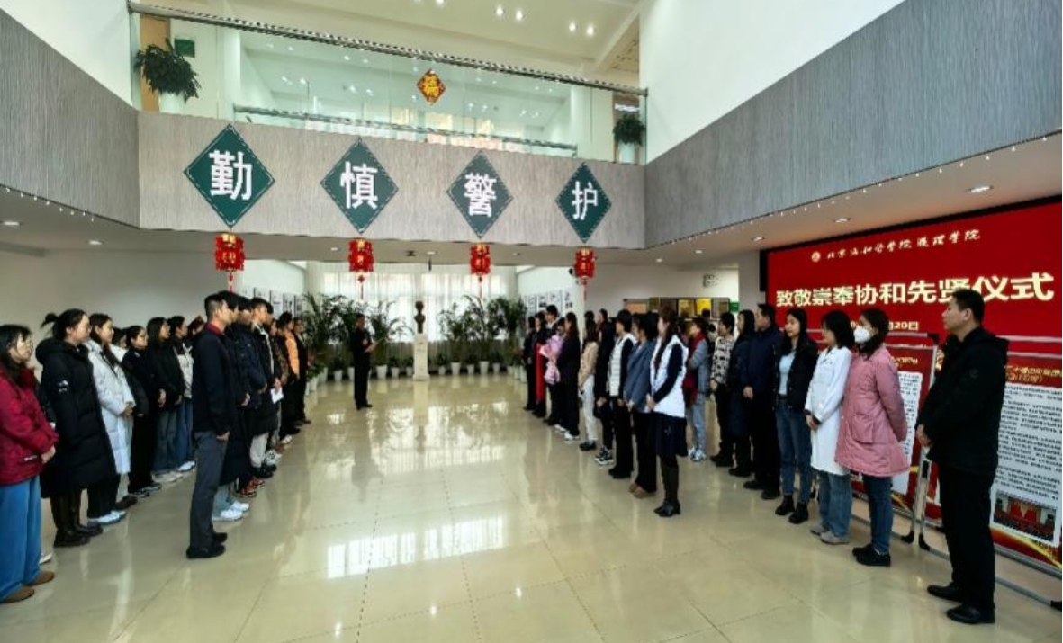 岁序更替、钟鸣新岁。2025年是协和高等护理教育105周年暨恢复高等护理教育40周年,适逢乙巳蛇年新春佳节即将到来。1月20日上午,beat365中国唯一官网领导班子成员、中层干部、教职工和学生代表齐聚八大处校区聂毓禅校长雕塑前,举行致敬崇奉历史先贤仪式,传承先辈志愿,铭记感恩前行,共贺新春祝福。仪式由党委书记安道彩同志主持。